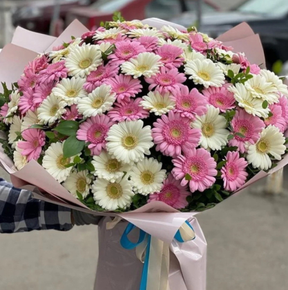 Букет из 101 белой и розовой герберой | Купить в Перте